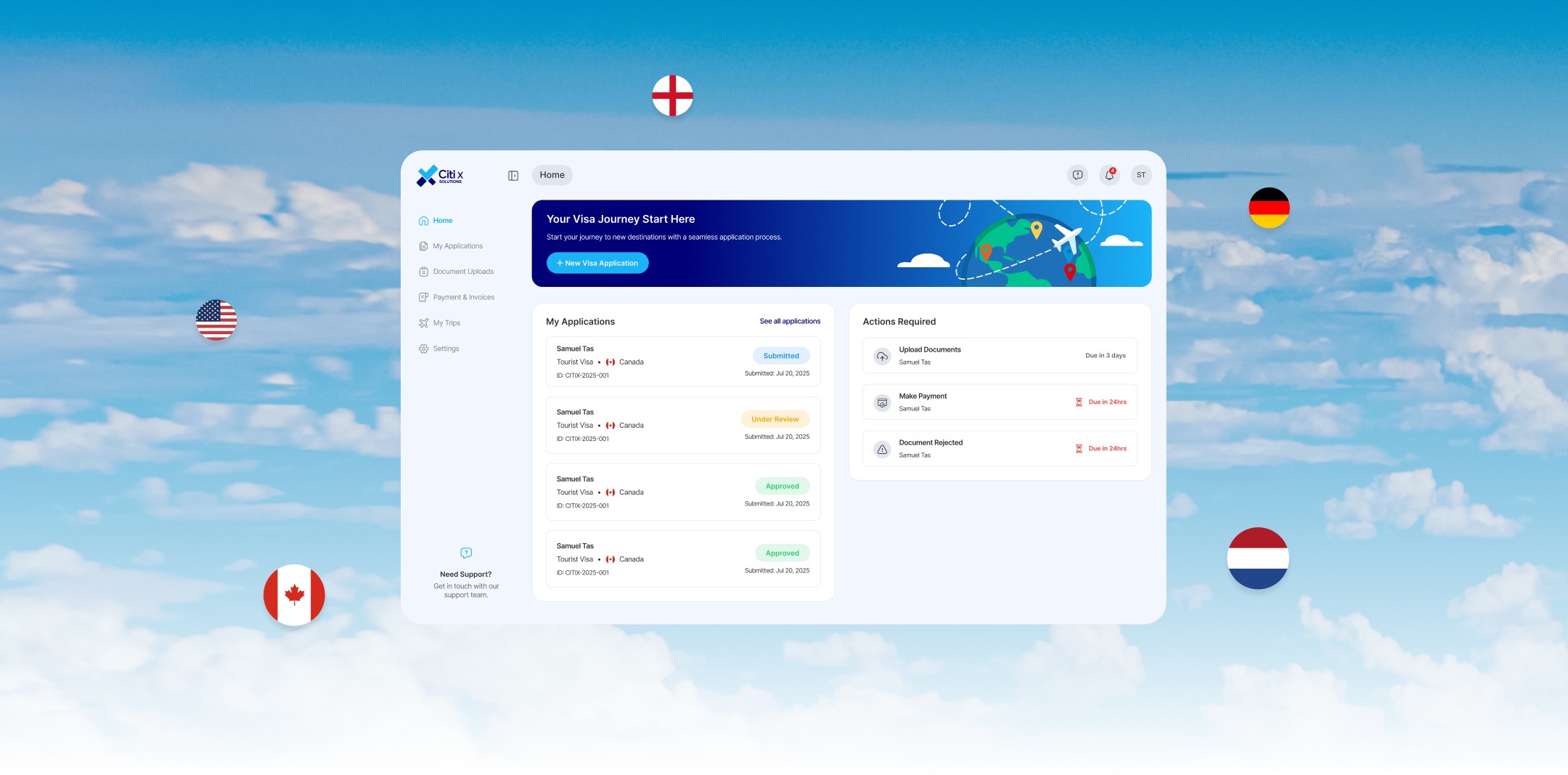 CitiX is a full-service visa platform that unifies application submission, document review, payment tracking, and admin oversight — built for travelers, agents, and enterprises.
